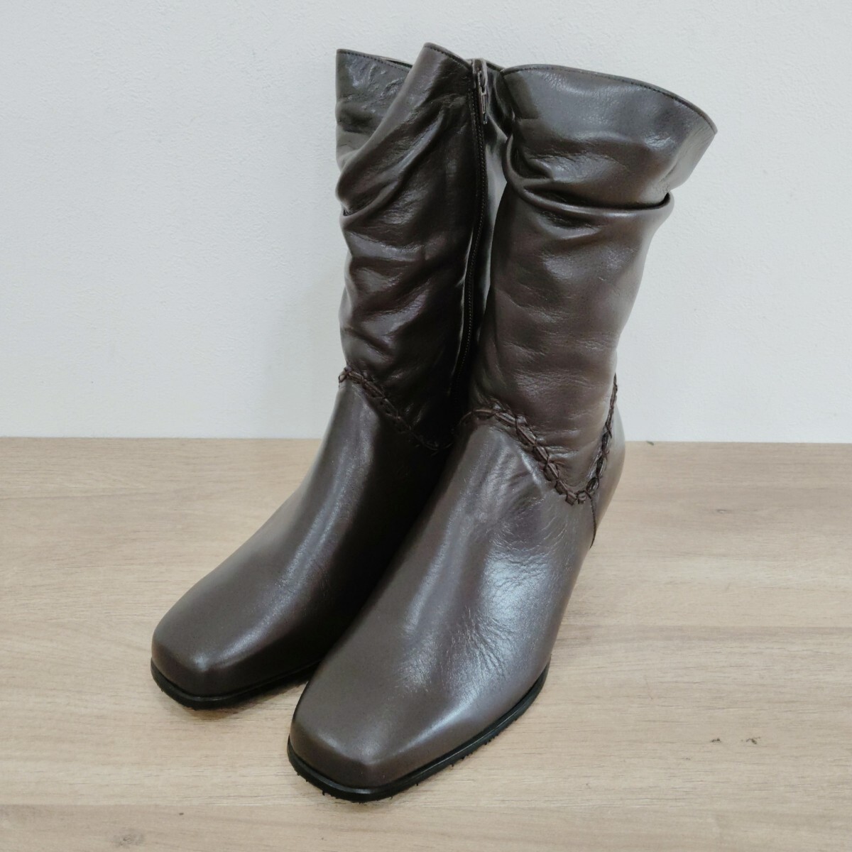 - ORMA JEAN ショートブーツ ヒール 23.5cm EEE ダークブラウン サイドジップ レディース