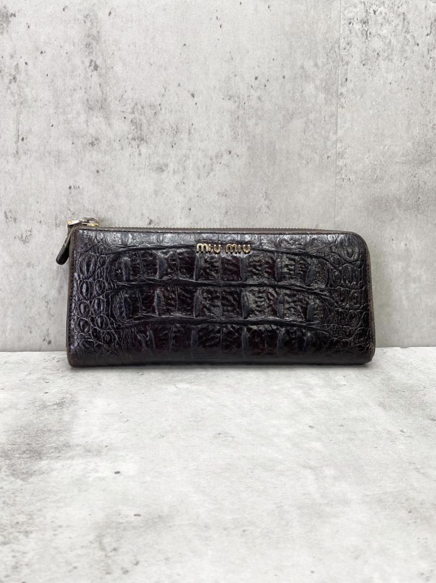 - ゆうパケットOK miu miu ミュウミュウ クロコ調 長 財布 茶 ■■