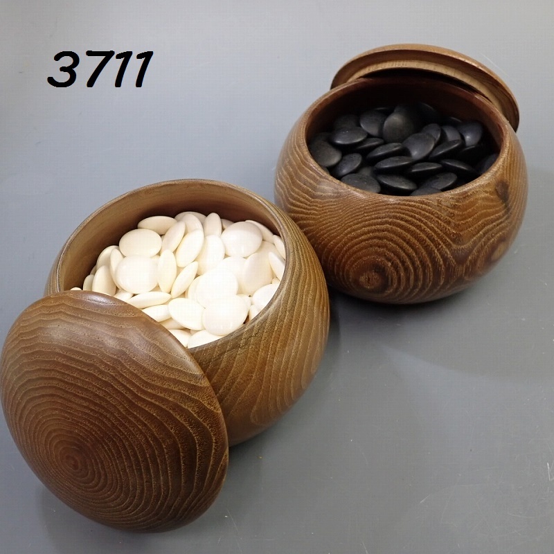 - ●FK-3711 本蛤 那智黒 碁石 25号 厚み約7.0mm 碁笥 20250806