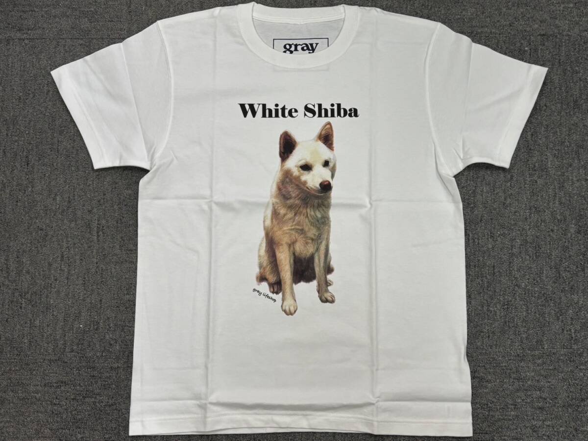 > Tシャツ シバイヌ(白)犬 プリント 男女兼用 Mサイズ gray us 100% cotton