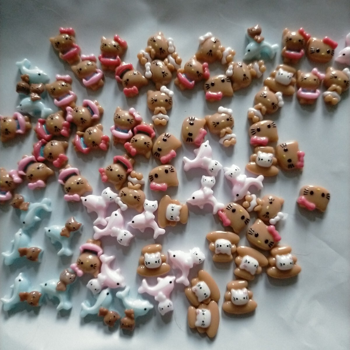 - ハローキティ デコレーションパーツ 日焼けキティ 70個セット キティちゃん デコネイル ネイルアート 日焼け プール 海 黒キティ