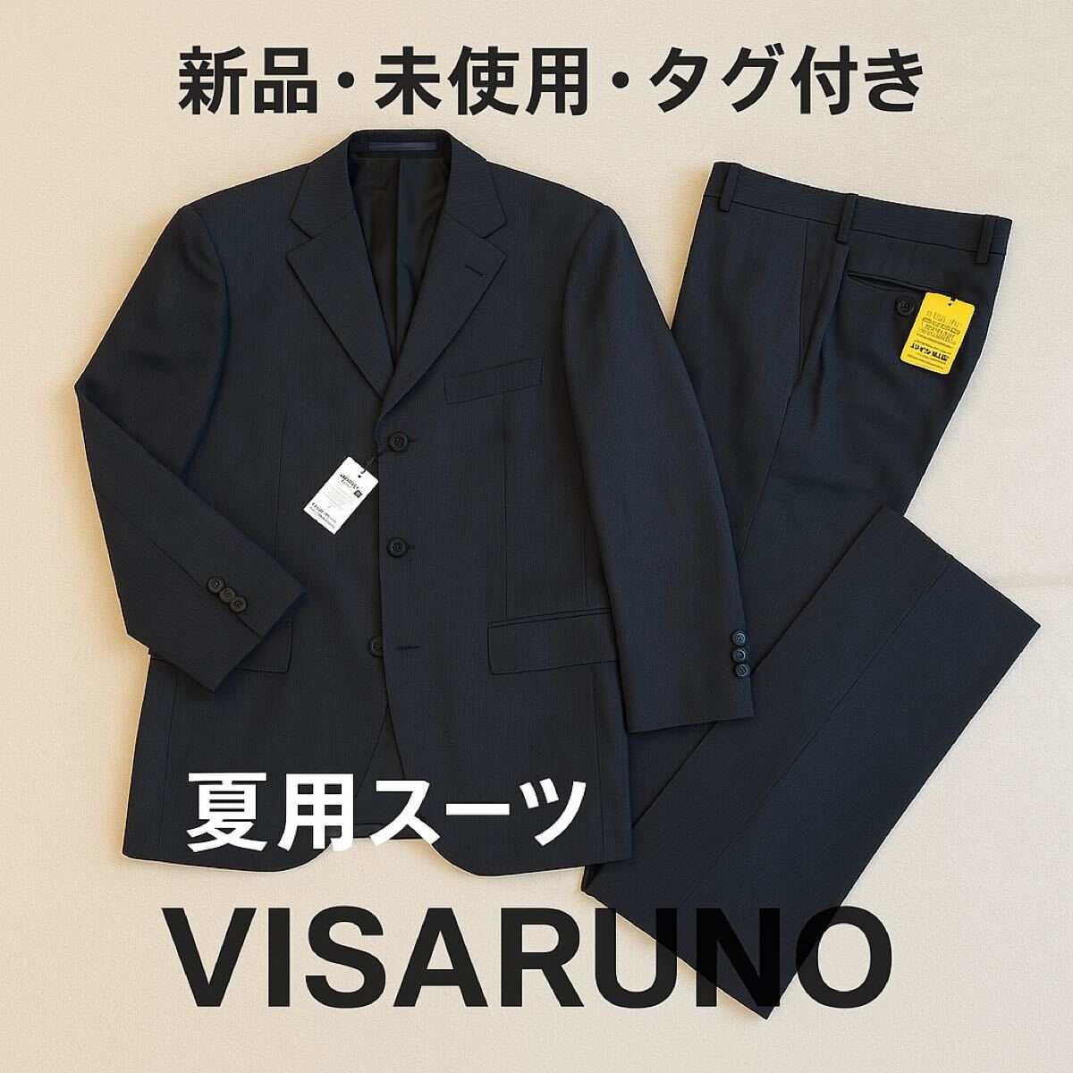 - 新品タグ付き VISARUNO 夏用メンズスーツ 上下セット L相当 濃紺