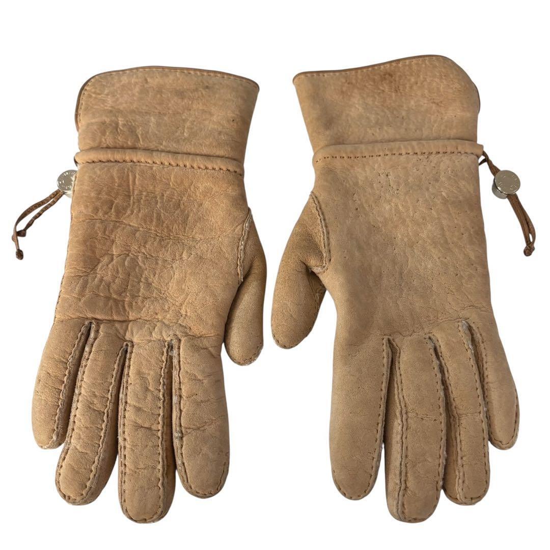 - エルメス HERMES ムートン グローブ 手袋 レザー セリエ キャメル レディース