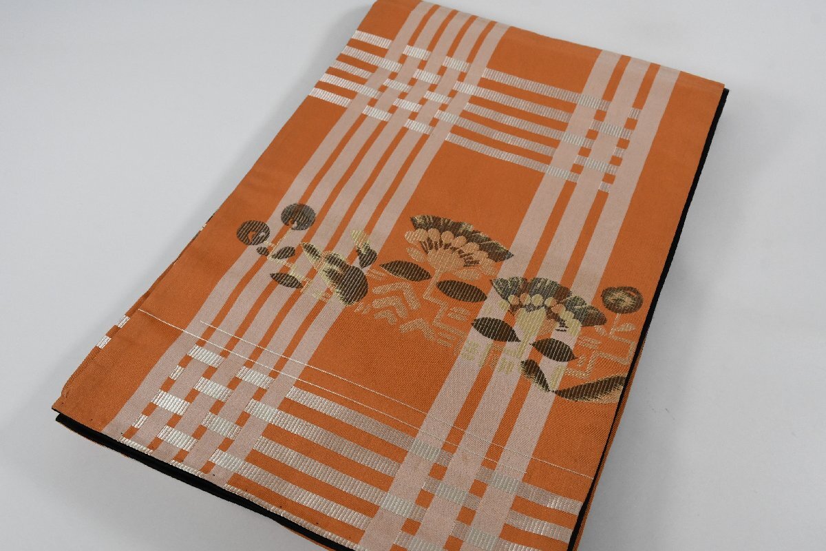- 袋名古屋帯 縞模様 花 帯丈364cm ★着物屋 ne-16162 桜庭呉服店