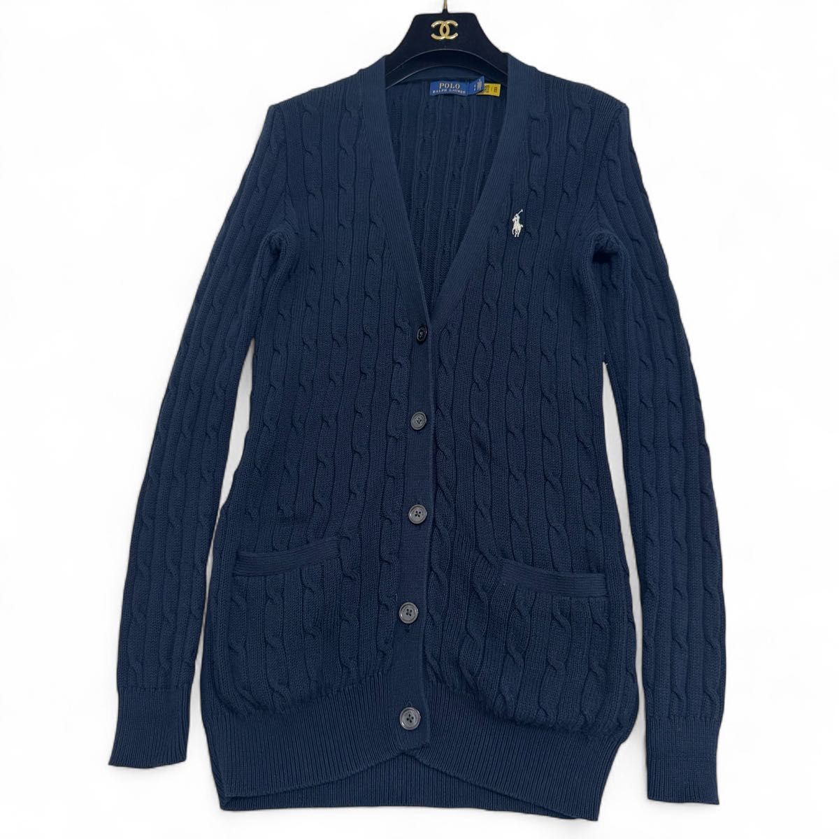 > 【現行 極美品】POLO RALPH LAUREN ポロラルフローレン コットン ロングカーディガン ネイビー ポニー 刺繍