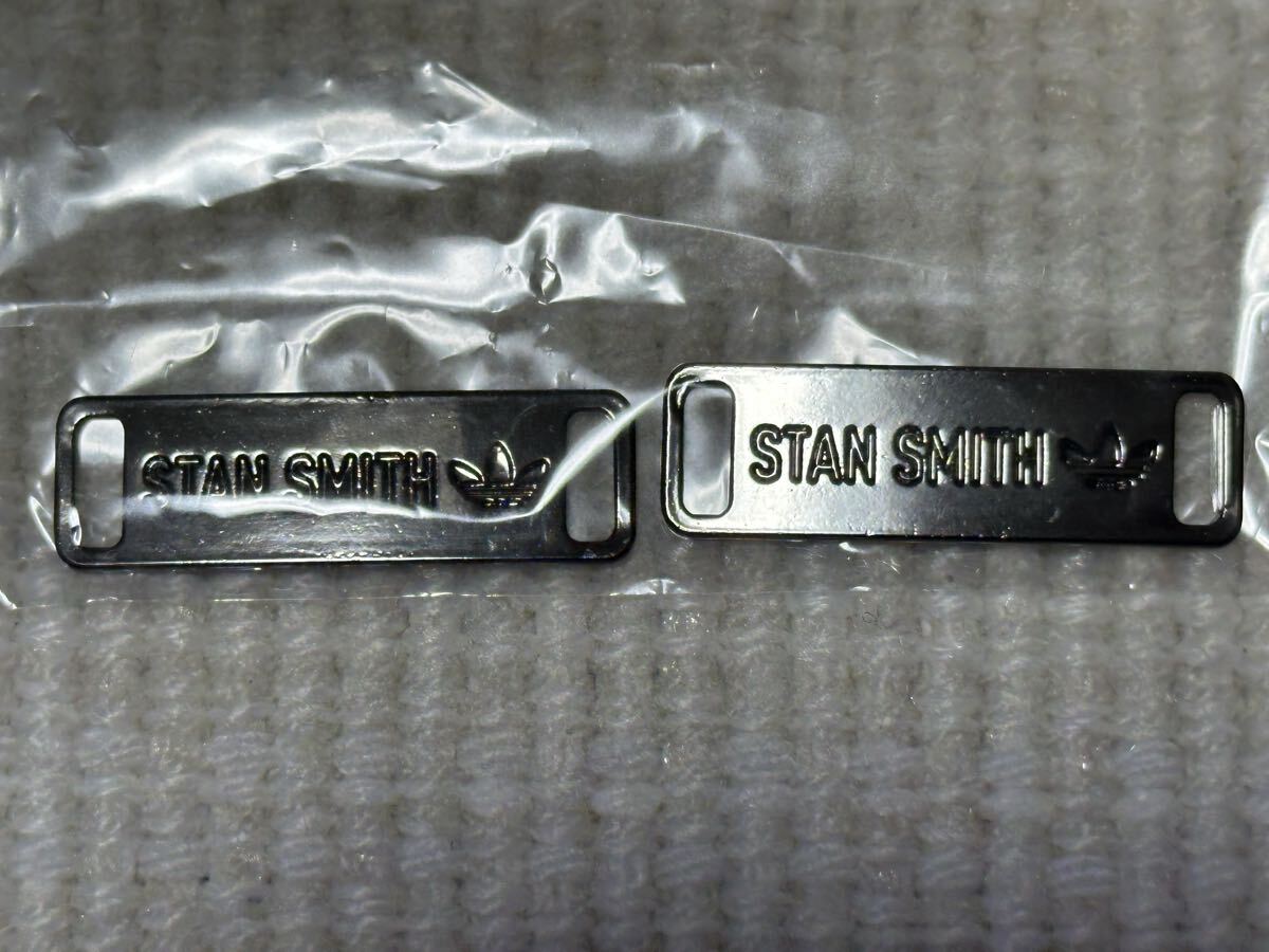 - 新品 未使用 未開封 アディダス adidas 靴紐 シューレース アクセサリ デュブレ ジュエル プレート シルバー ロゴ スタンスミス STAN SMITH