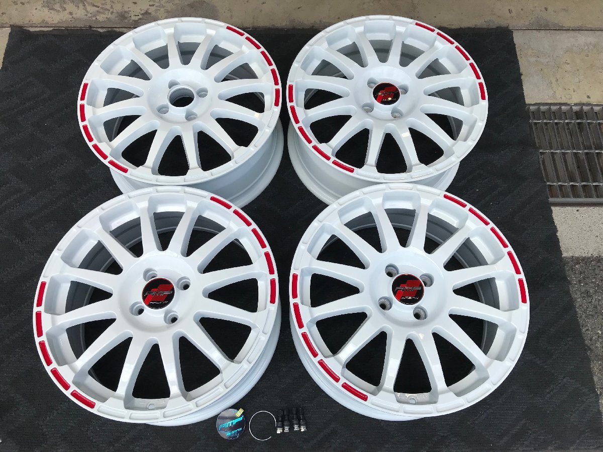 > 【訳アリ・店頭展示品ホイール4枚セット】 マルカサービス RMPレーシング GR12 7.0J-17 4/100 +45 ホワイト/ストロボレッド 17インチ