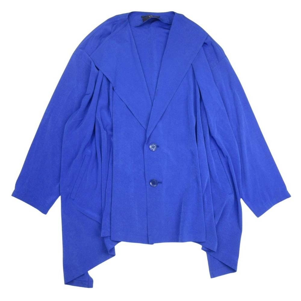 > 新品同様 24ss Y's ワイズ ヨウジヤマモト クレープデシン ノーカラー ショートコート ドレープ ジャケット 1 ロイヤルブルー