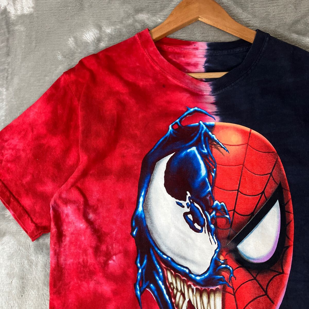 > スパイダーマン ヴェノム MARVEL 00s アメコミTシャツ キャラクターTシャツ 古着 半袖 Tシャツ S相当 赤レッド ネイビー紺