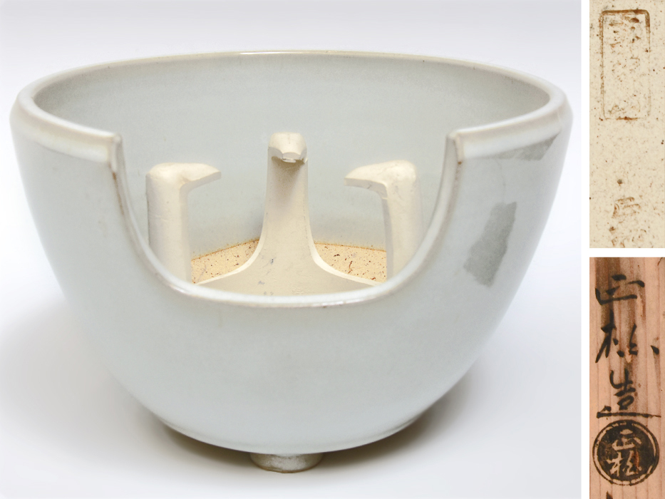 > 赤膚焼 松田正柏 (造) 白釉 紅鉢風炉 共箱 五徳 瓶掛け 陶磁器 茶道具 u0796a