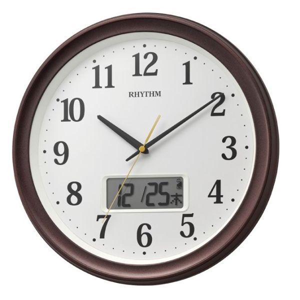 - 【新品・保証付/即決】 シチズン リズム時計 電波時計 日付 曜日 温湿度 連続秒針 シンプル 8FYA02SR06 茶 掛け時計 R50806-3SG