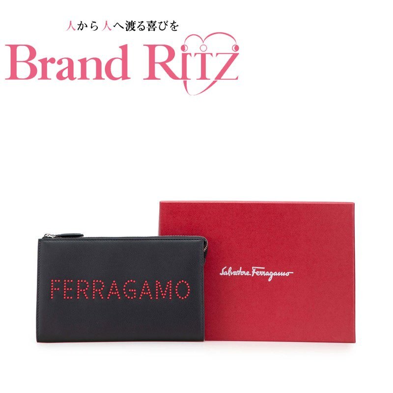 > 中古 極美品 サルヴァトーレフェラガモ ロゴスタッズ クラッチバッグ ポーチ 24A121 【送料無料】【三田店】