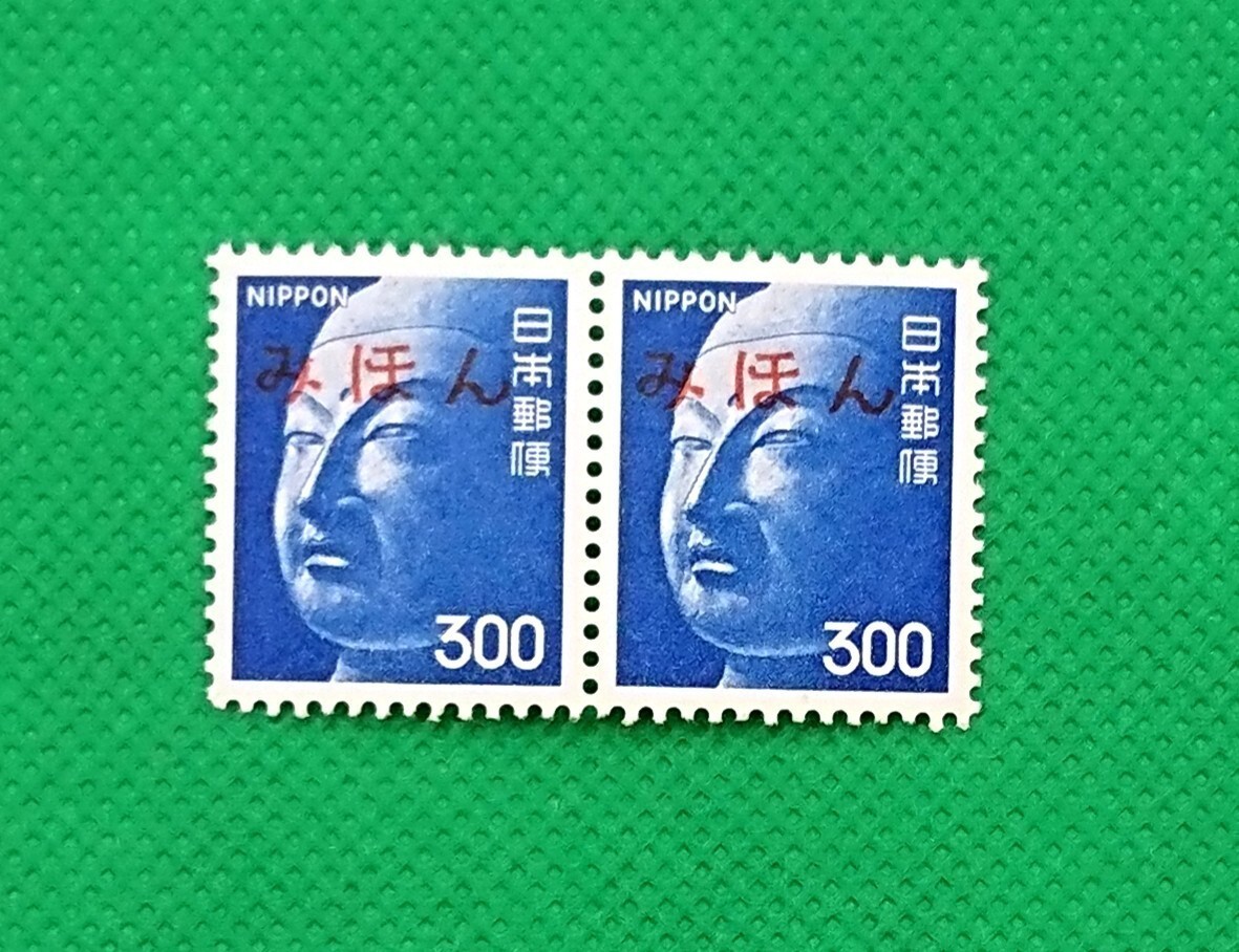 > 仏頭/2枚ブロック/見本切手/第4次ローマ字入り/美品/ヒンジ無/シミ無/シワ無/糊艶良好/300円切手/みほん字/希少/No.716