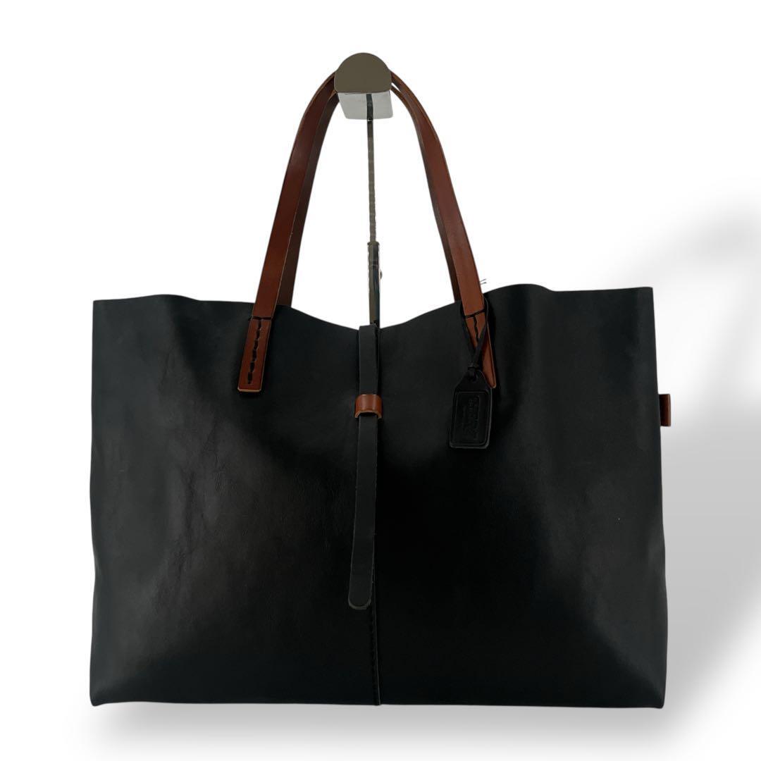 - HERZ ヘルツ トートバッグ 横型 ソフトレザー 肩掛け可 大容量 A4収納可 チャーム 黒 ブラック ロゴ