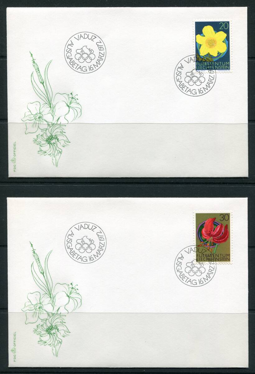 - リヒテンシュタイン 1972年 植物 花 4種完 FDC 初日カバー z8733
