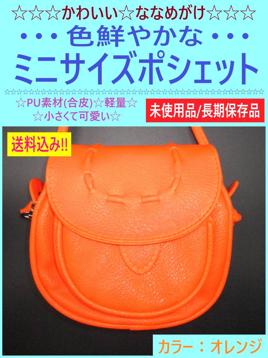 - 未使用 かわいい 斜め掛け ポシェット ミニ ショルダー バッグ オレンジ PU素材 合皮 軽量 小さい カジュアル ななめがけ 海外製 長期保存