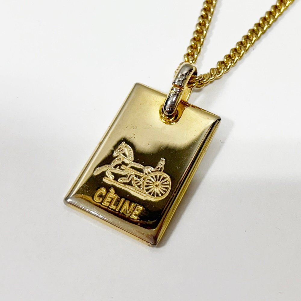 YA1 CELINE セリーヌ プレート ネックレス ゴールドカラー 馬車 ヴィンテージ
