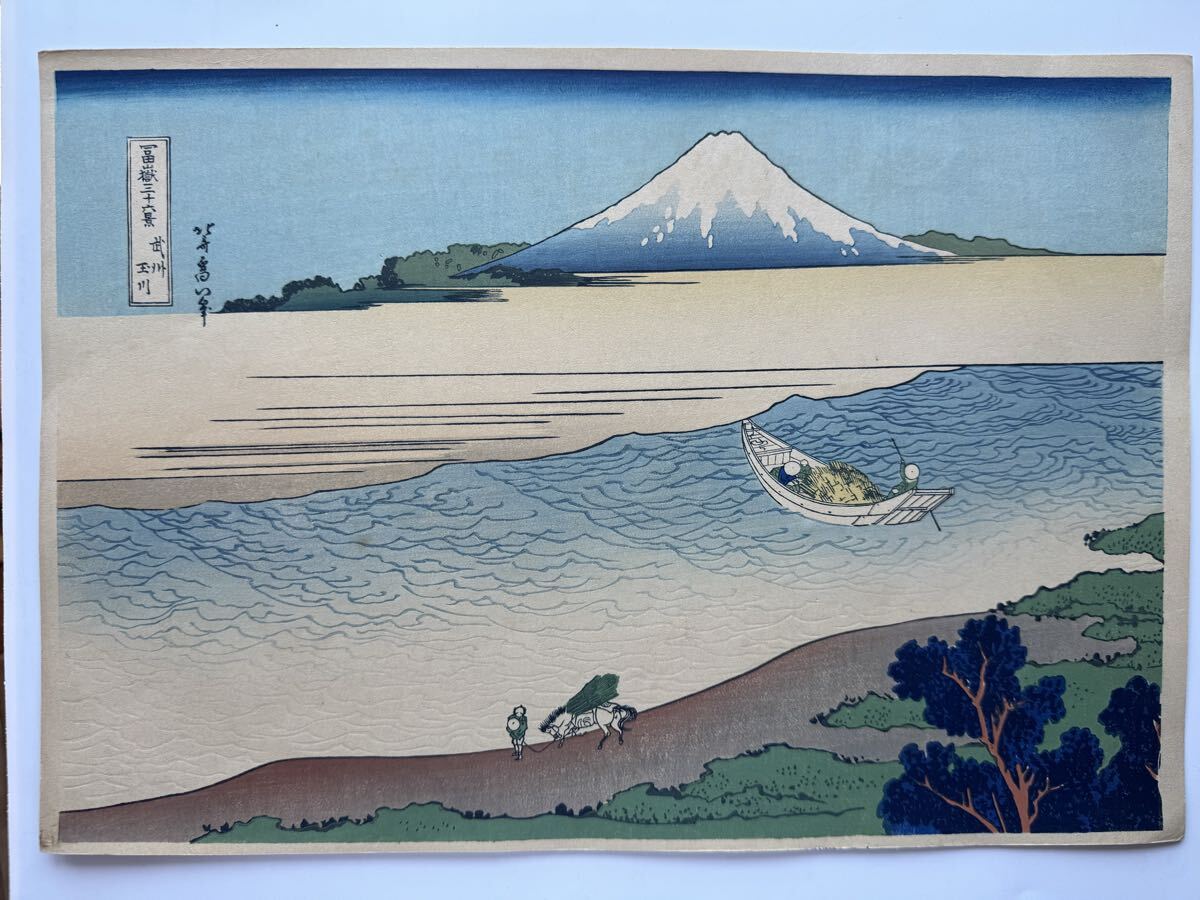 > 真作 明治大正期 初期高見澤木版 富嶽三十六景 『 武州 玉川 』 力強い擦りです。 浮世絵 木版画 葛飾北斎 名所絵 錦絵 約26×38cm