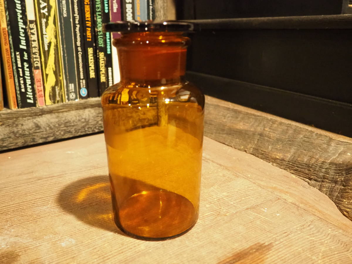 - 【飴色ガラス瓶 小】デッドストック薬瓶レトロ古道具アンティーク骨董インテリアインダストリアルドライフラワー試験管ビーカーフラスコ