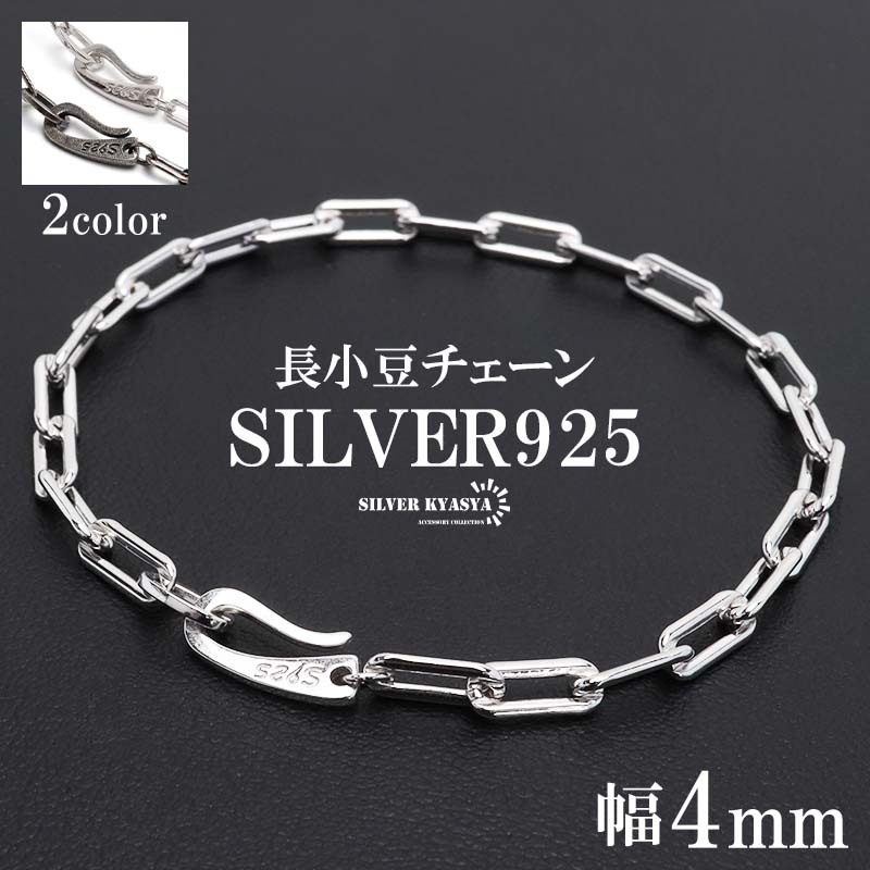 > (シルバー) 流行り 長小豆チェーンブレスレット 925 ロングあずきチェーンブレスレット 幅4mm シンプルブレスレット