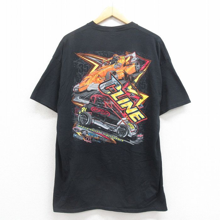 - XL/古着 半袖 Tシャツ メンズ レーシングカー 大きいサイズ クルーネック 黒 ブラック 25aug05 中古