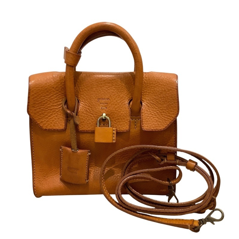 > ゲンテン(genten)レザー ミネルヴァ 2WAY ハンドバッグ ライトブラウン ショルダーストラップ付き 鍵あり 【中古】 JA-23029