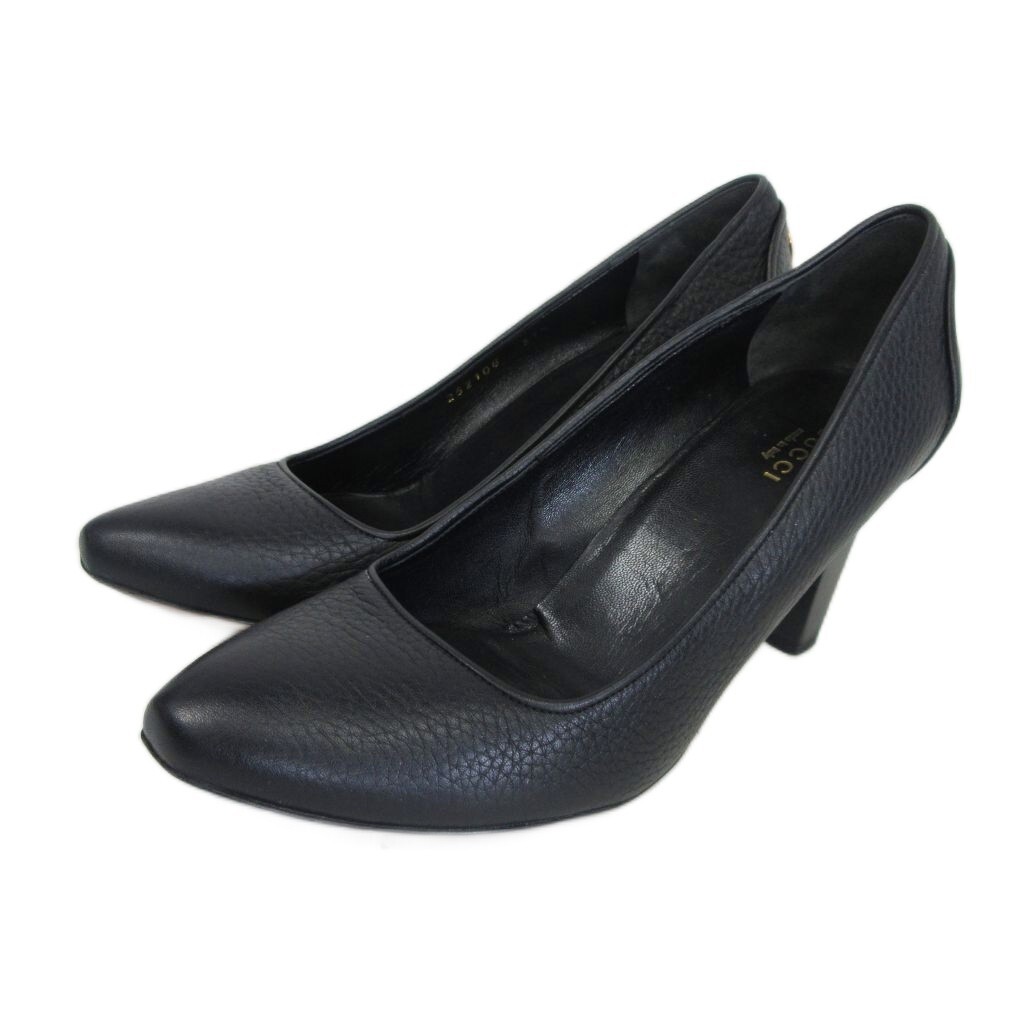 > グッチ GUCCI 252108 GG シボ革 レザー パンプス ヒール シューズ ゴールド金具 黒 ブラック 37.5 約24.5cm IBO78 レディース