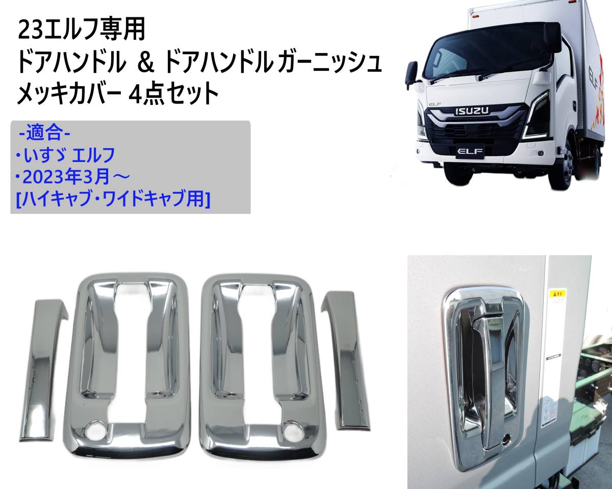 - 即日発送 23エルフ ハイキャブ ワイドキャブ 専用設計 ドアハンドル ドアハンドルガーニッシュ メッキカバー いすゞ 新型エルフ カスタム