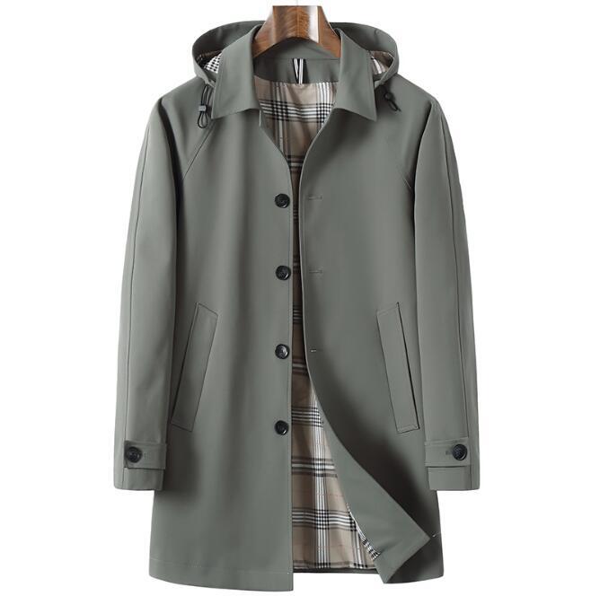 > 新入荷 大人気新品スプリングコート メンズ 春秋 ウインドブレーカーステンカラーコートフード付き チェスターコート アウター グリーン L