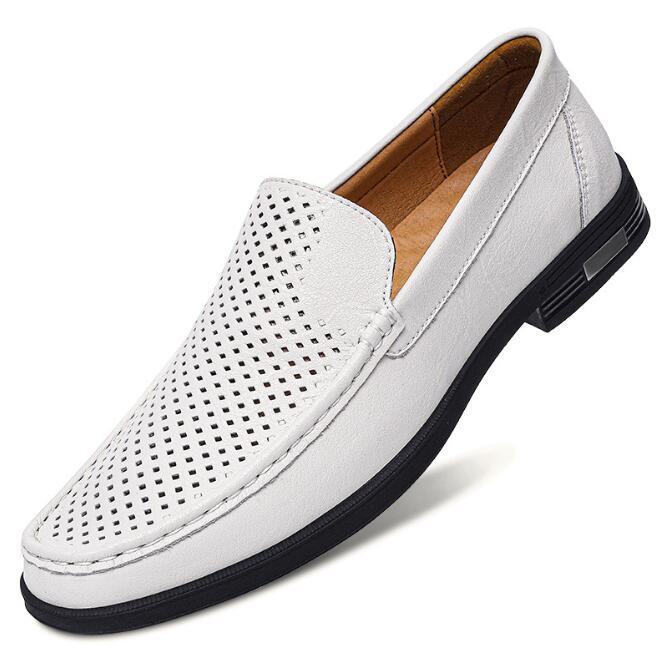 > 大人気透かし彫り/白/42# 新品 高品質 英国風 牛革 メンズ ハンドメイド 本革 ドライビングシューズ スリッポン ローファー 牛革