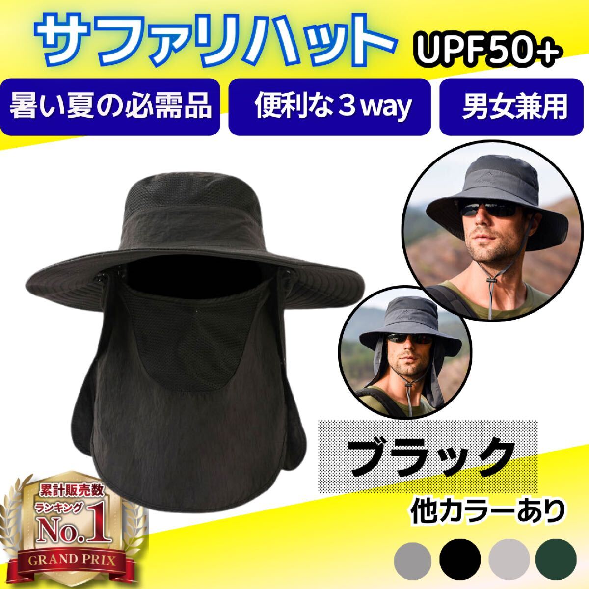 - サファリハット メンズ 帽子 UVカット 日除け レディース アウトドア 黒 フェイスガード 軽量 サンバイザー 海 山 革 釣り キャンプ