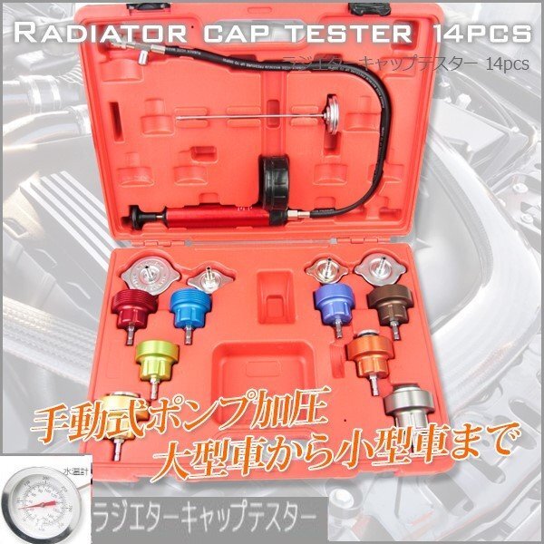 - 【送料無料】収納ケース付ラジエター キャップテスター ユニバーサル 14pcs ラジエーター オーバーヒート 冷却 メンテナンス