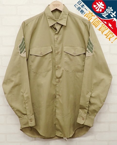 > 9T4821【クリックポスト対応】米軍実物 USMC カーキオフィサーシャツ 74年 ビンテージ