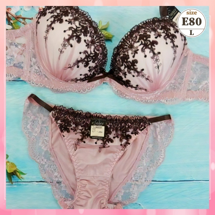 > Ze8021◎美胸ブラショーツセット【E80/L】下着 ランジェリー 脇高 谷間メイク シャンデリア ピンク 新品未使用
