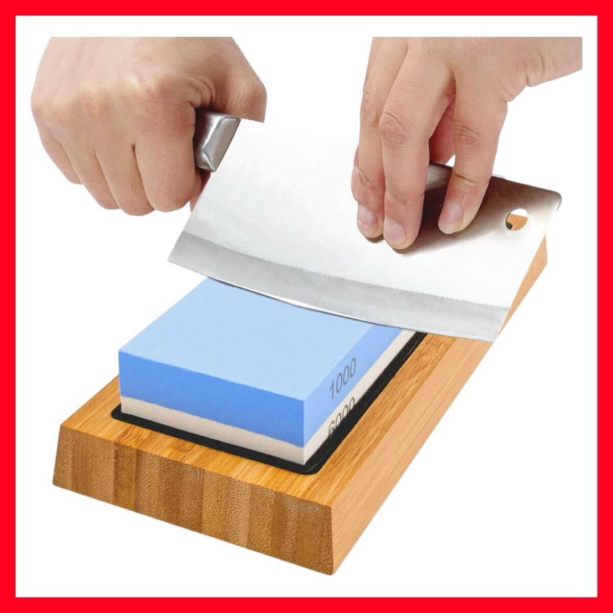 - 砥石 包丁研ぎ石1000/6000両面砥石 家庭用砥石 荒砥 中砥 仕上げ砥石 竹製の滑り止めベース ゴム台が付き 包丁研ぎに最適