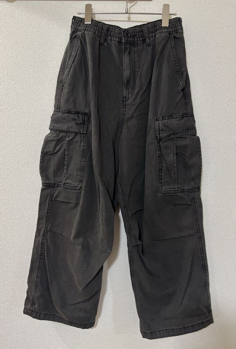 - GU ジーユー スーパー ワイド カーゴパンツ ミリタリー ブラック USED 加工 ウエストゴム Sサイズ ストリート ファストファッション 0810