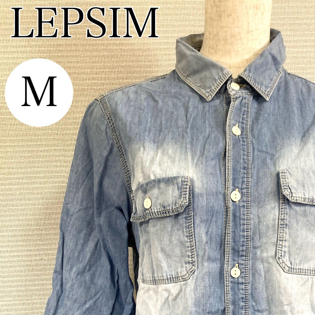 - 【AA4135】 LEPSIM レプシィム Mサイズ トップス シャツ 羽織り 七分袖 スタンダードカラー レディース ブルー系 デニム風 カジュアル