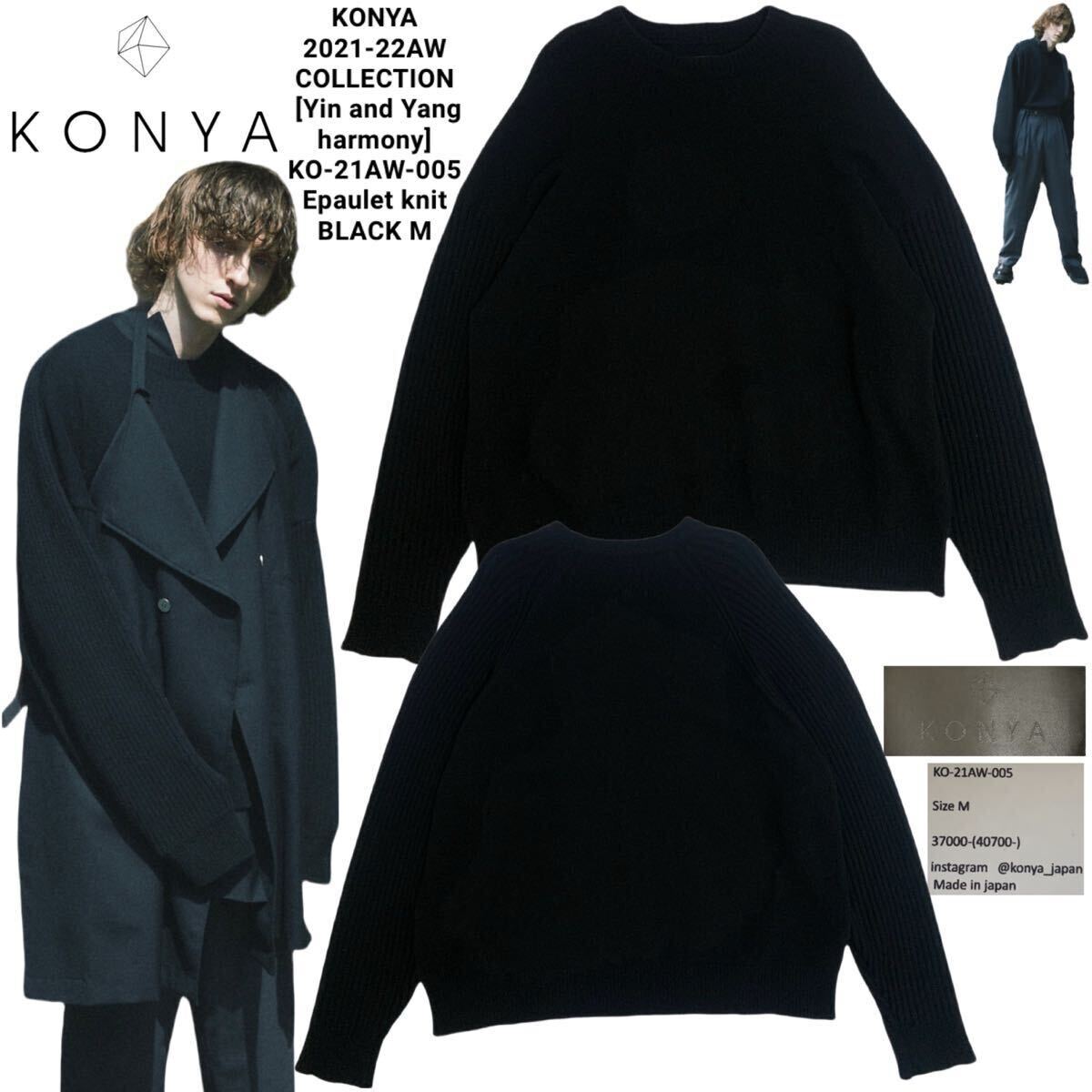 > KONYA コンヤ 2021-22AW COLLECTION [Yin and Yang harmony] KO-21AW-005 Epaulet knit BLACK M ルーズシルエットニット オーバーサイズ