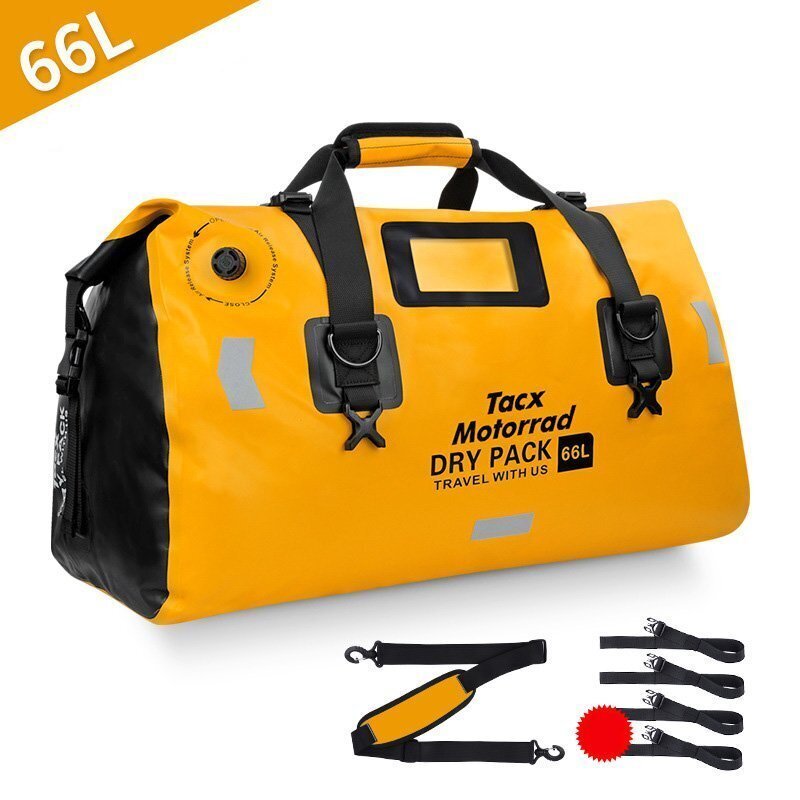 - バイク用シートバッグ キャンプ 大容量66L ショルダーバッグ 容量可変 防水 折り畳んで収納 通勤通学 リフレクター 大きな開口部 イエロー