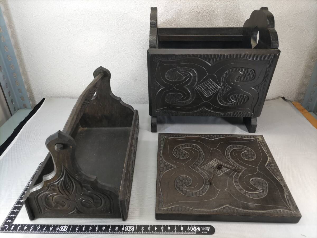 - ■送料無料!■まとめて■アイヌ文様 ・小物入れ■バスケット■木製■アイヌ模様・紋様・木彫り工芸品■郷土民芸品■2点セット!