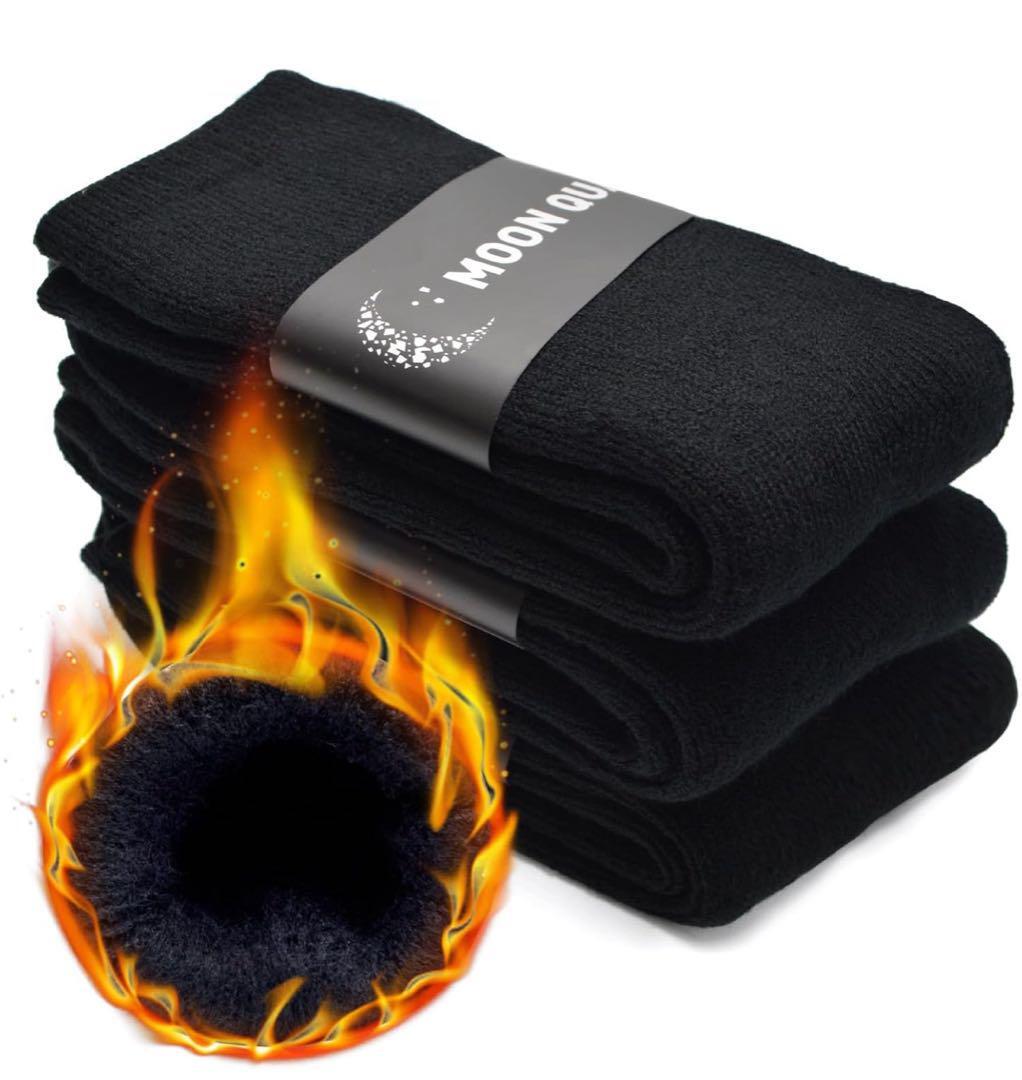 - 【3枚組】靴下 厚手 裏起毛 ブラック 防寒保温 吸湿通気 冬 トレッキング