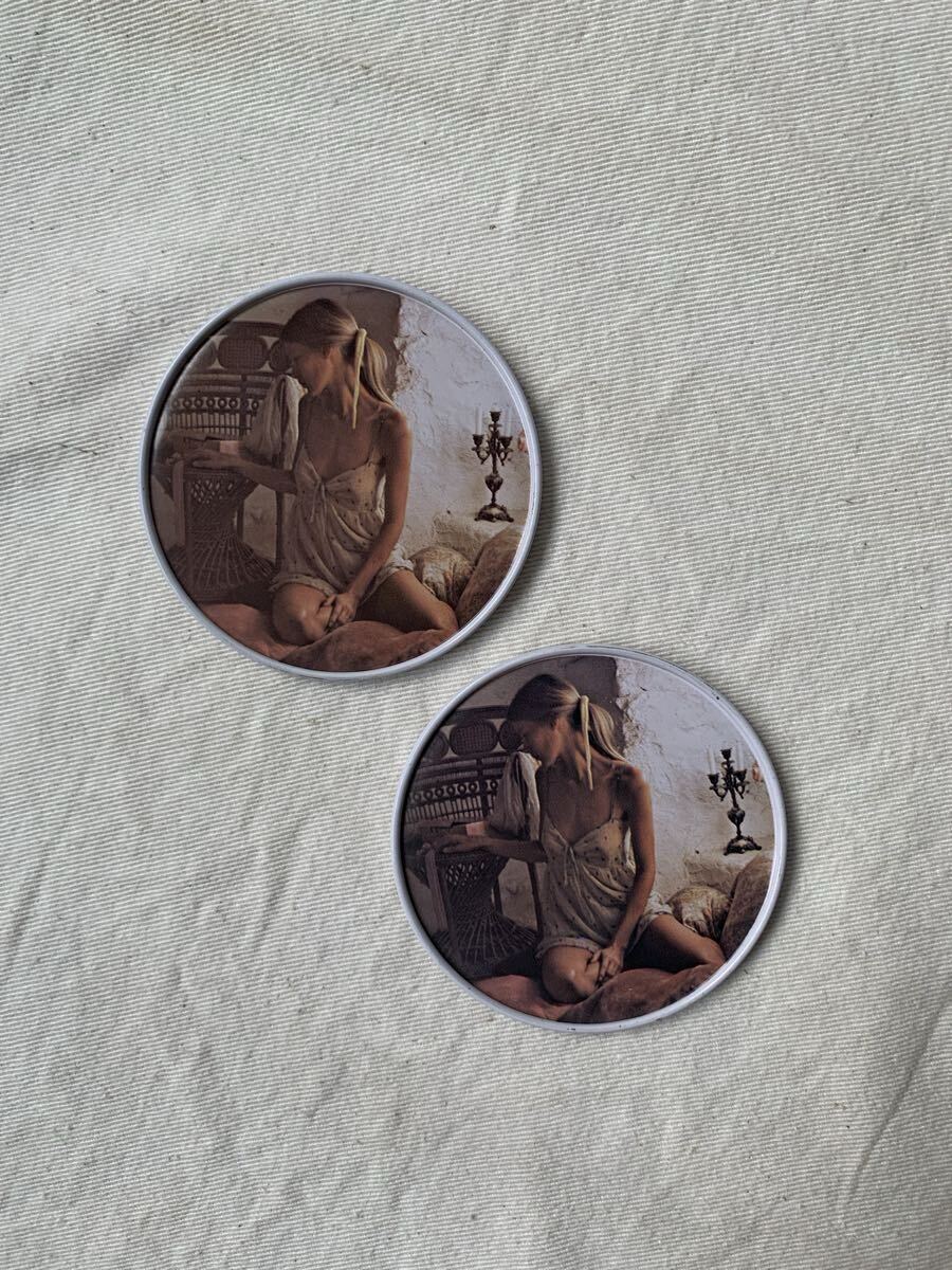 - デザインが素敵なフォトコースター2個セット 昭和レトロ雑貨インテリアディスプレイ古道具アンティークビンテージコレクション当時物飾り