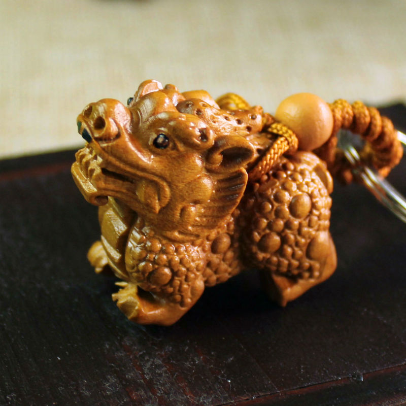 - 【桃の木 根付】◆麒麟キリン◆ ナチュラル/天然木製/手作り/ハンドメイド/細工彫刻/キーホルダー/ストラップ/プレゼント/開運風水厄除け