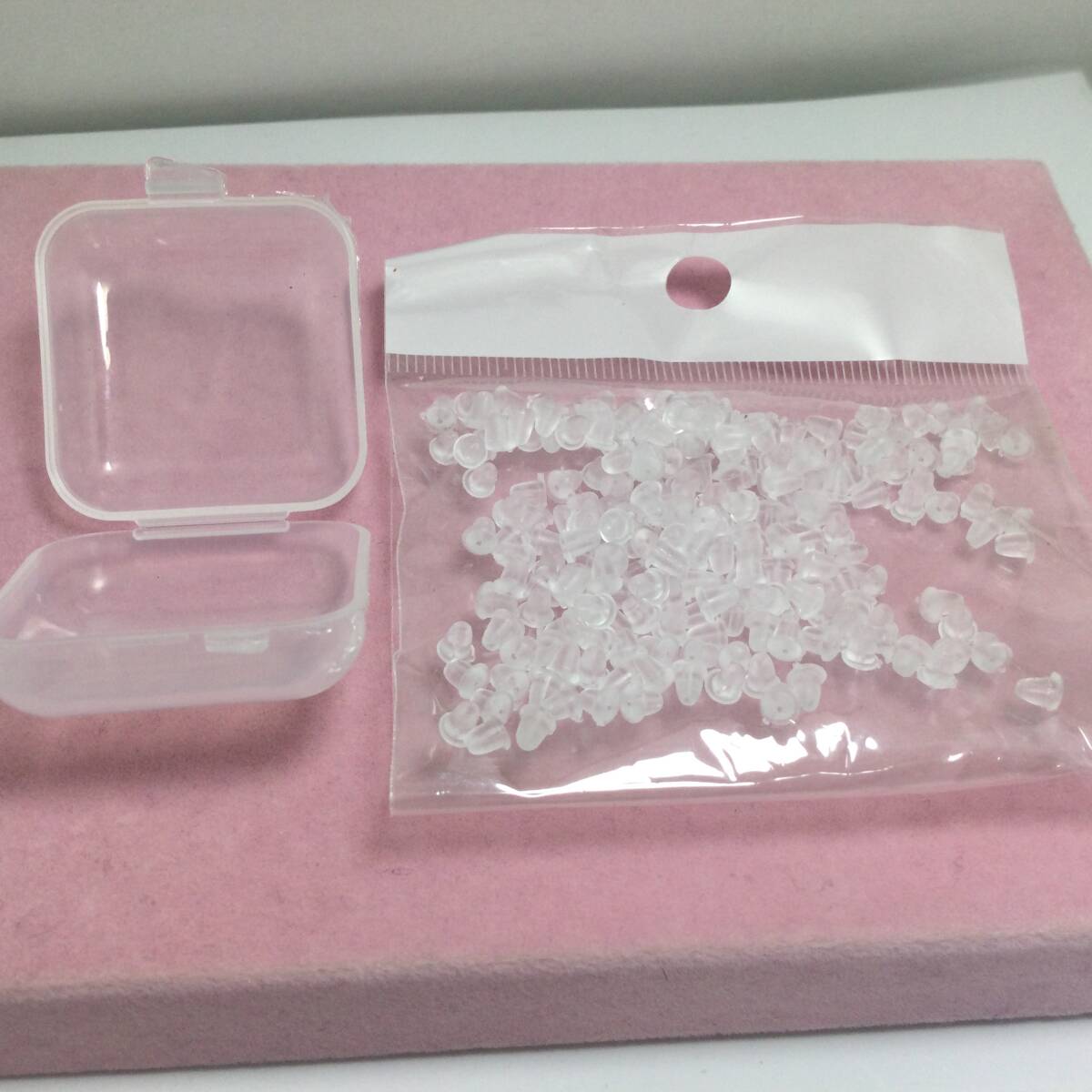 - 【匿名配送】ピアスシリコンキャッチ サイズ横・縦4-5mm 透明400個+ケース付き