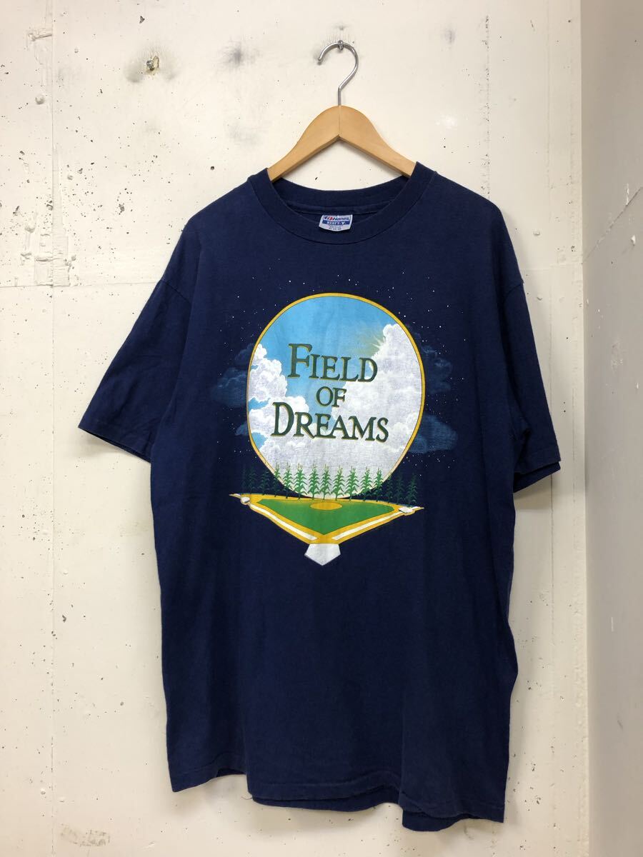 > 80s 89年 FIELD OF DREAMS 半袖tシャツ 紺 XL USA製 シングルステッチ 野球映画 ビンテージ フィールドオブドリームス