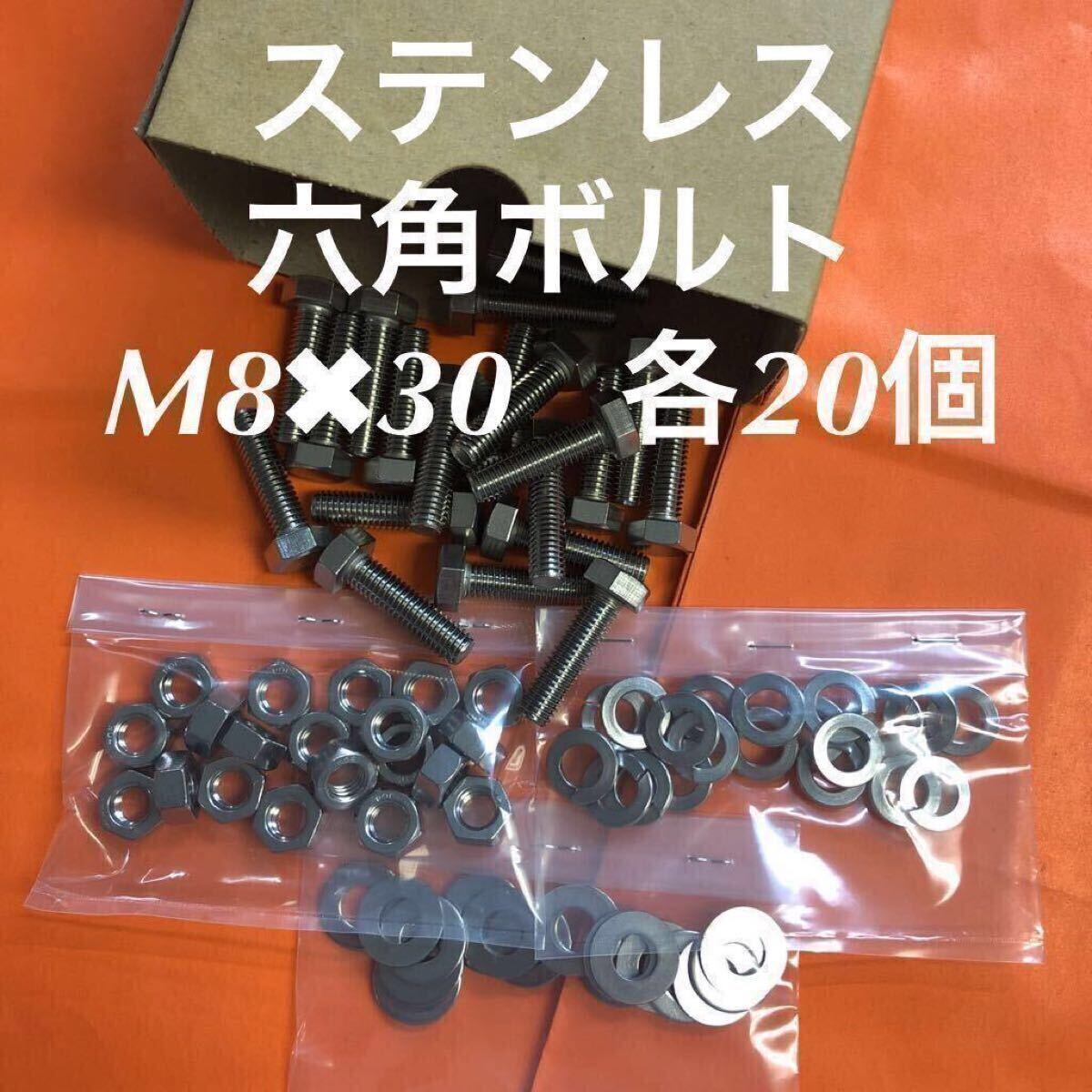 > ★送料無料★ステンレス 六角ボルト M8×30 ナット・平ワッシャー・スプリングワッシャー 各20個 ステン六角ボルト