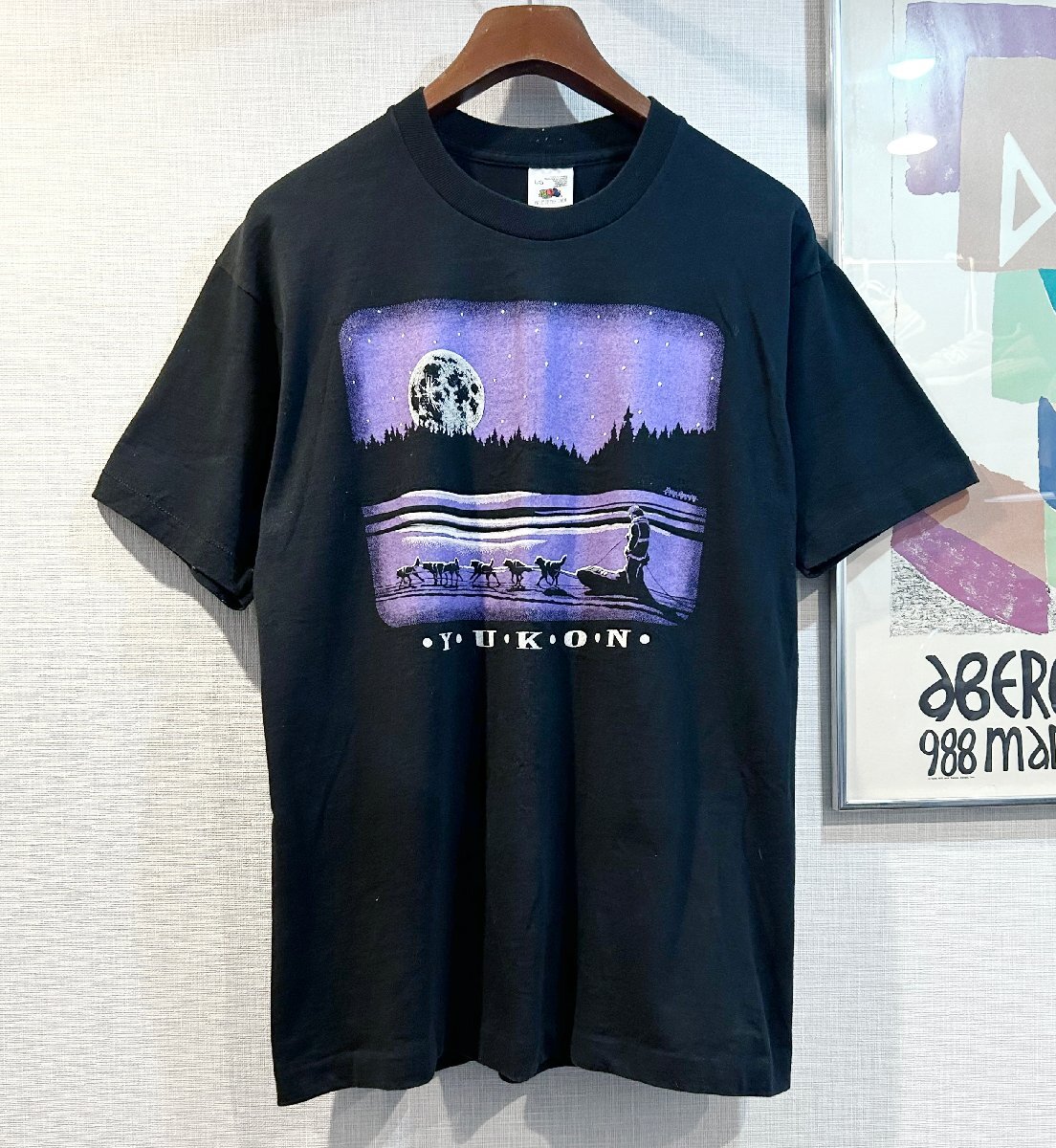 > 90's~ ビンテージ FRUIT OF THE LOOM フルーツオブザルーム プリント YUKON 犬ぞり ユーコン カナダ 月夜 Tシャツ L EF1981-5-30-EG06