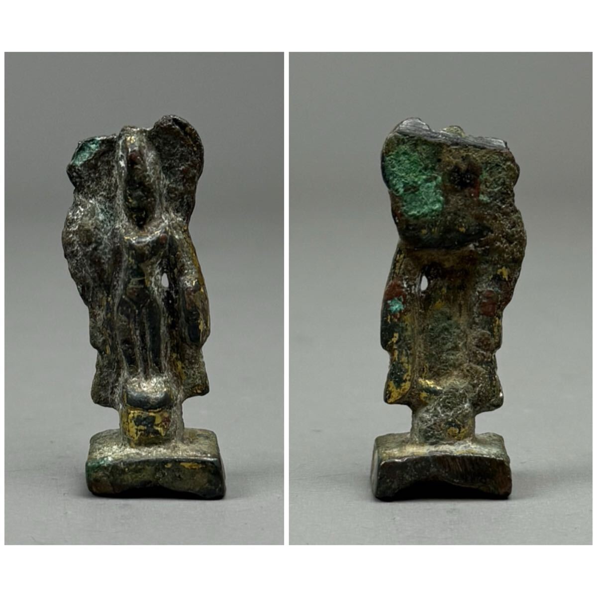 - 朝鮮美術 新羅仏 676年〜 古銅 豆仏 懐中仏 時代品 鍍金 仏像 仏教美術 古玩 中国 青銅 銅製 高4.7㎝ 18.37g 木箱付