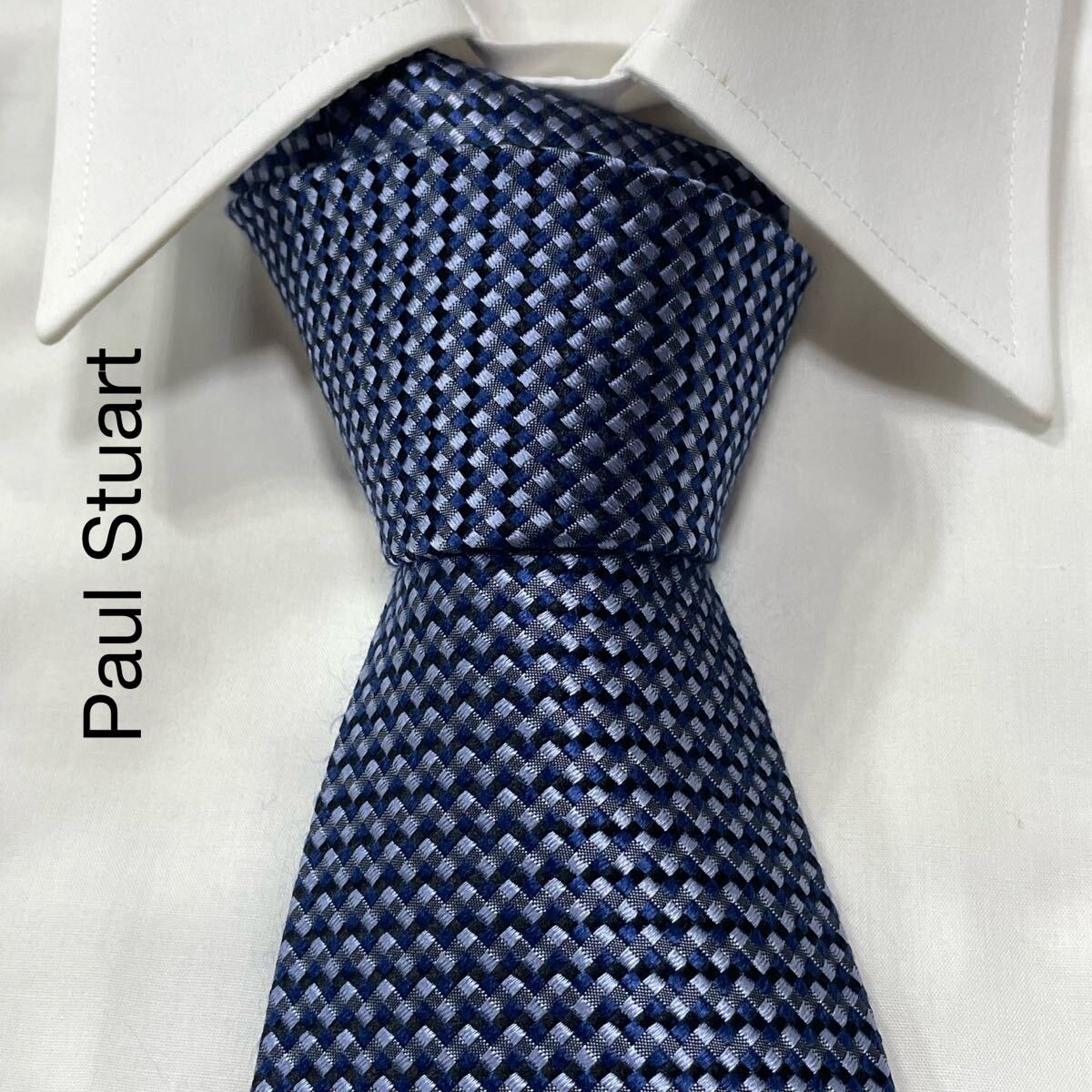 - Paul Stuart ポールスチュアート ジャガード シルク ネクタイ 日本製 ブルー ネイビー ブラック TG2749