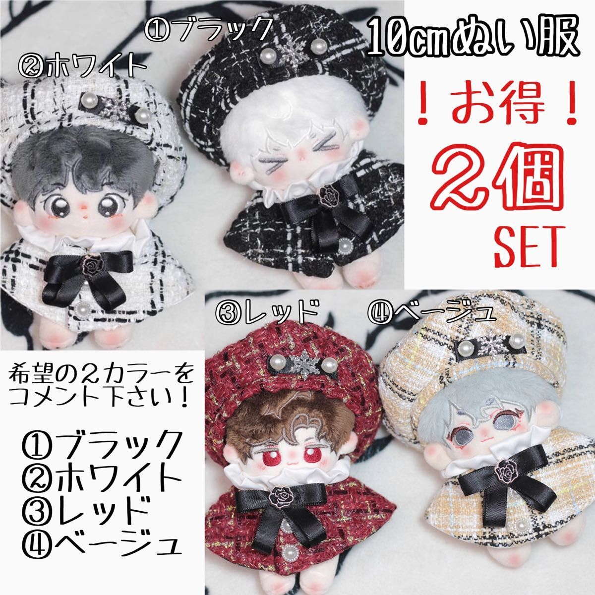 > お得 2個セット 10cm ぬい服 ツイード 帽子&ワンピース 2点 着せ替え ぬい 衣装 ぬいぐるみ マスコット ぬい活